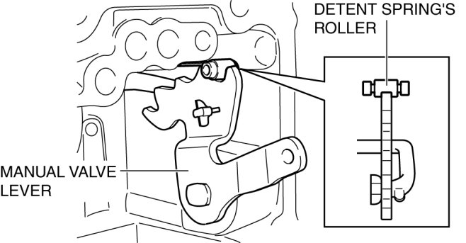 - When installing, ensure that the center of the detent spring's roller fits the center of the manual valve lever.