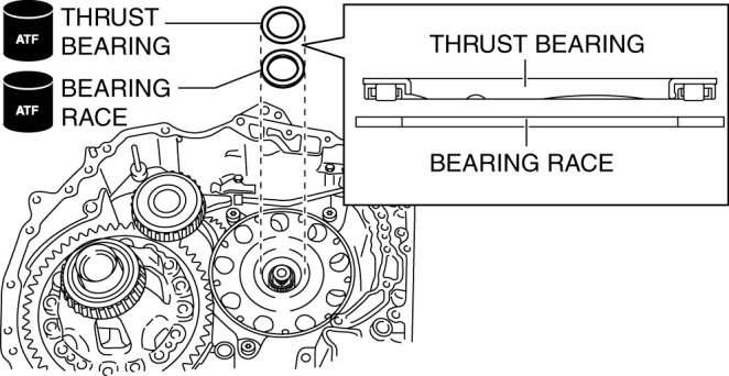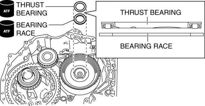 71. Apply ATF to the bearing race and the thrust bearing.