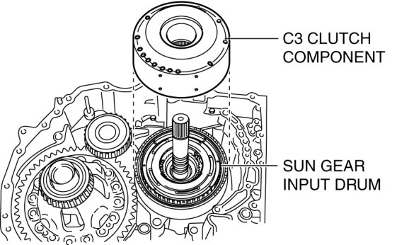 - Install the C3 clutch component so that it engages with the sun gear input drum as shown in the figure.