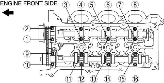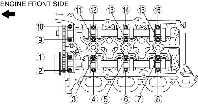 RH bank camshaft caps and temporarily tighten the camshaft cap bolts evenly in the order shown in several passes.
