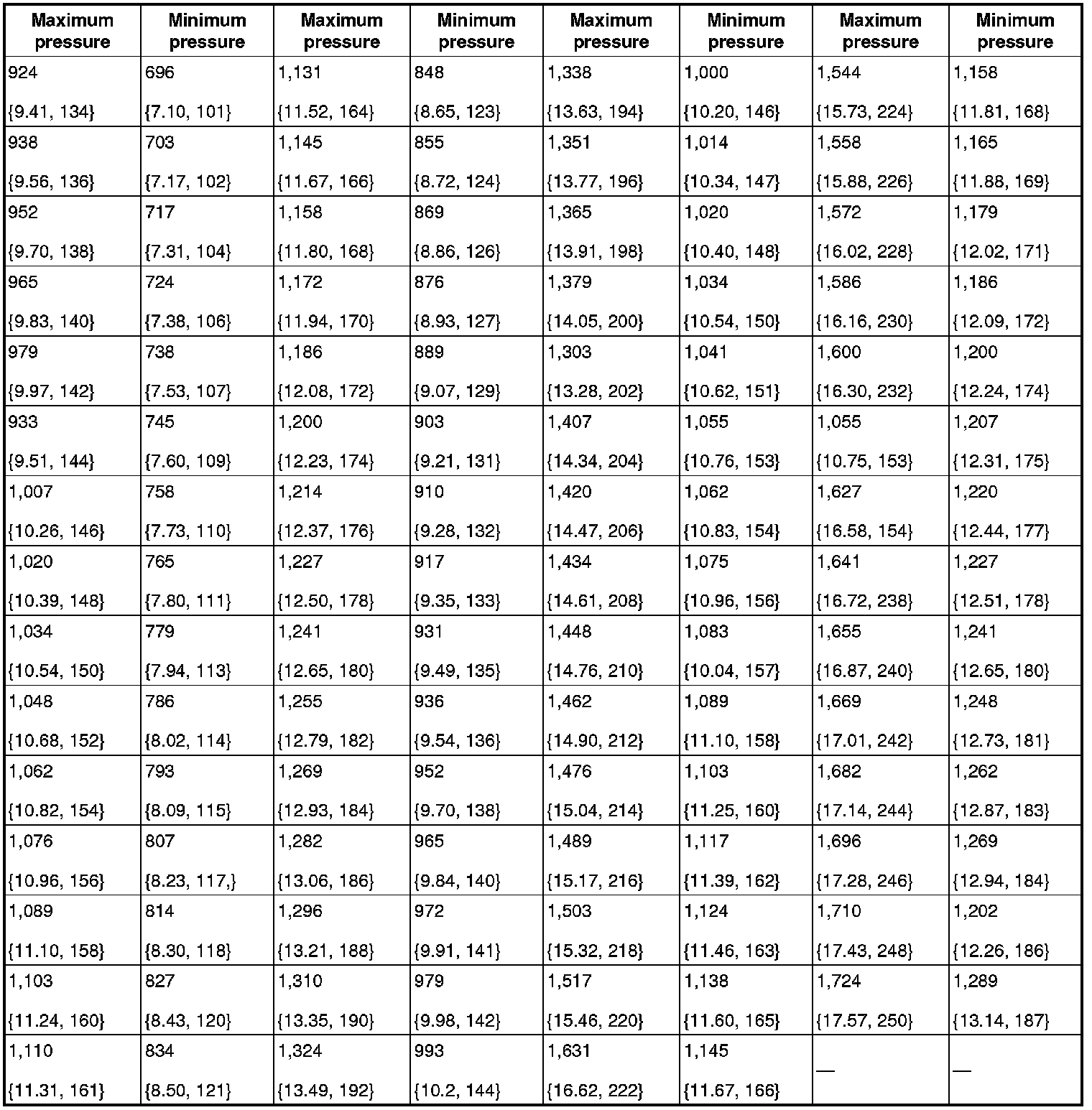 Compression Pressure Limit ChartkPa {kgf/cm2, psi}