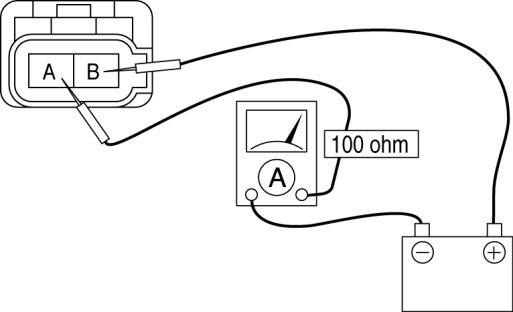 1. Connect the input/turbine speed sensor terminal 2 to the battery positive terminal, connect the battery negative terminal to input/turbine speed sensor terminal 1 through an ammeter set to a resistance of 100 ohm.