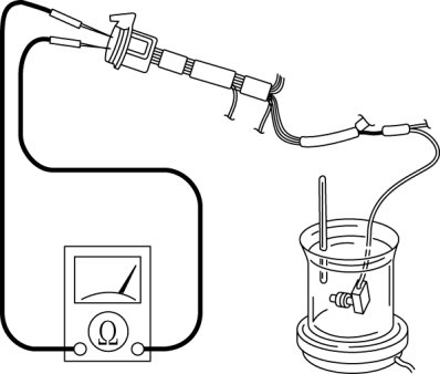 1. Place the TFT sensor and a thermometer in ATF as shown in the figure, and heat the ATF gradually.