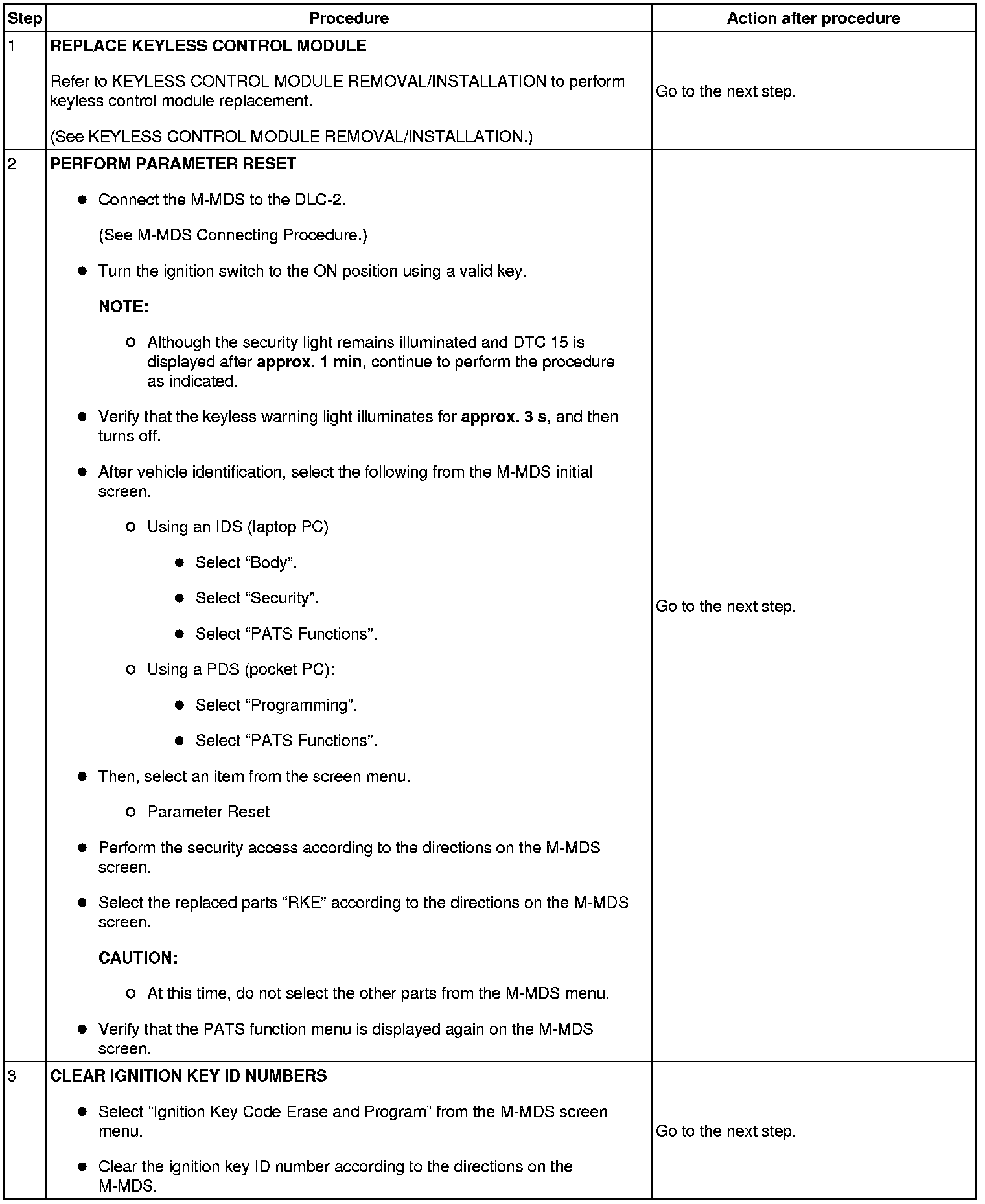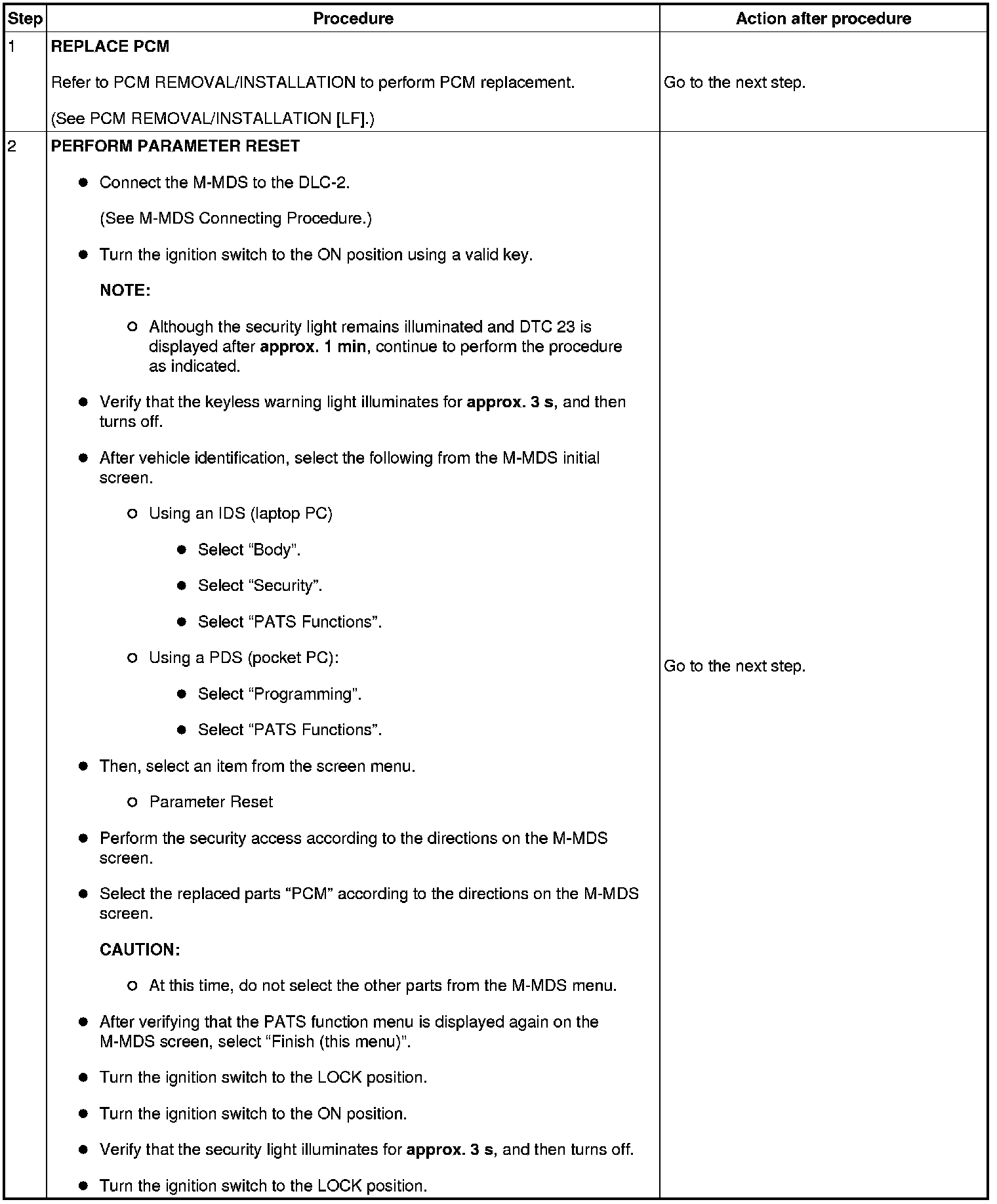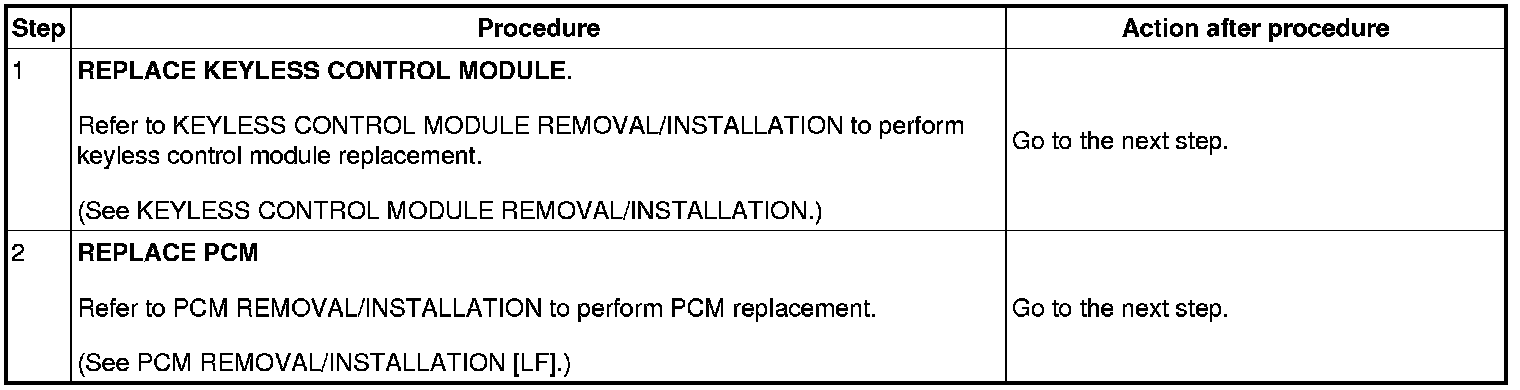 No.6 Programming Procedure Due to Simultaneous Replacement of Immobilizer System-related Parts (PCM and Keyless Control Module)