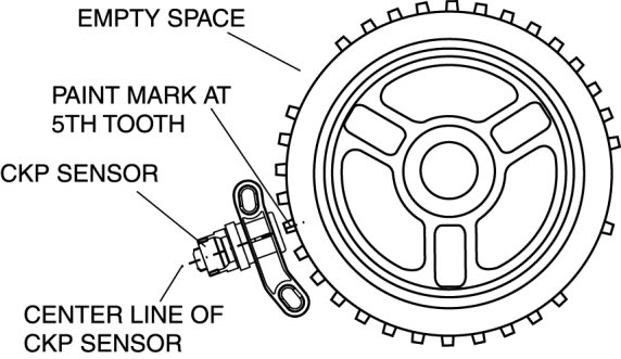 3. Align the center line of the CKP sensor and the line drawn in Step 2, then install the CKP sensor.
