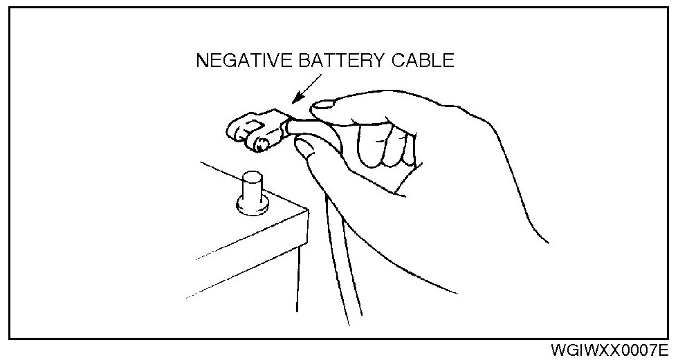 - Before disconnecting connectors or removing electrical parts, disconnect the negative battery cable.