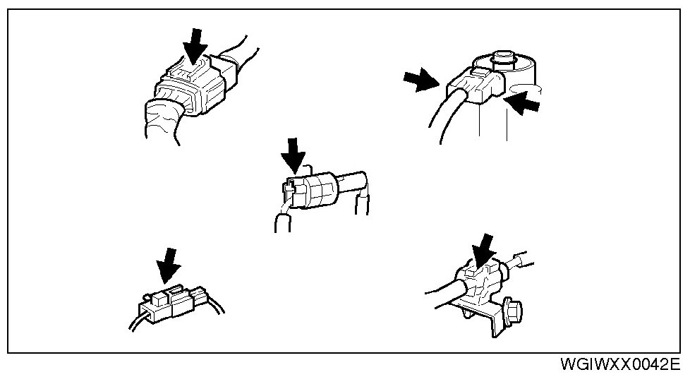 - Inspect the terminals of waterproof connectors from the connector side since they cannot be accessed from the wiring harness side.