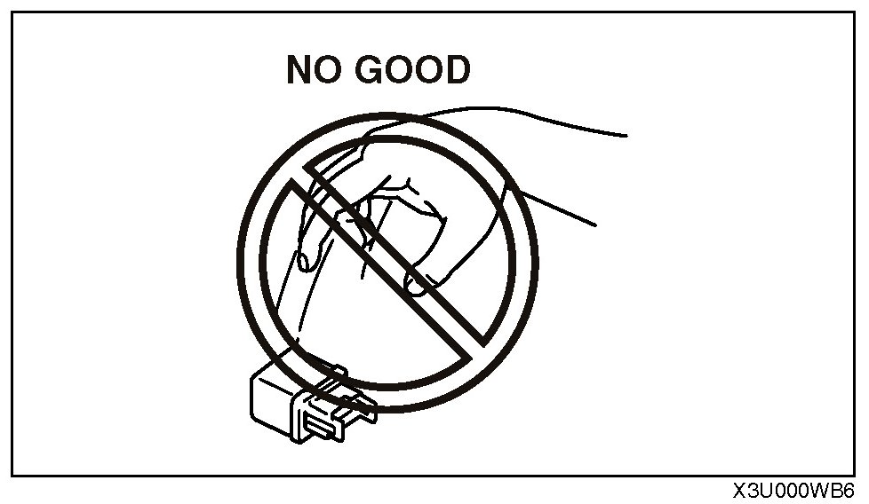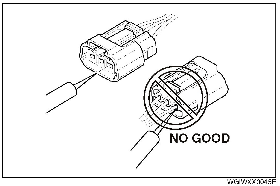 - When a tester is used to inspect for continuity or measuring voltage, insert the tester probe from the wiring harness side.