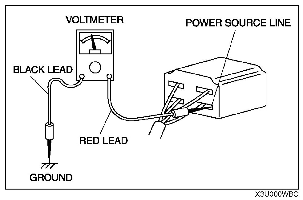 CAUTION: Do not connect a jumper wire from the power source line to a body ground. This may cause burning or other damage to wiring harnesses or electronic components.