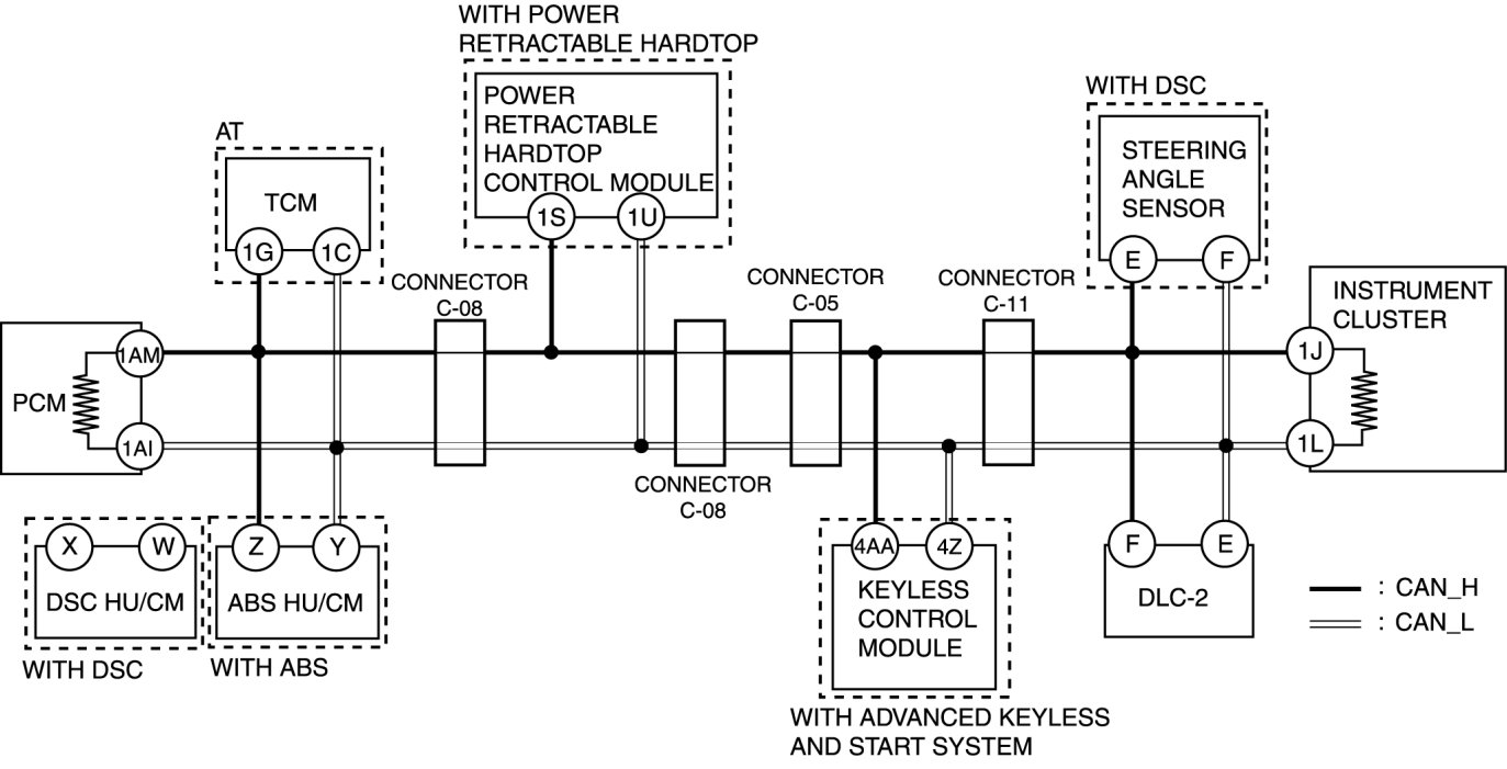- Short circuit in wiring harness between CAN system-related module CAN_L and CAN_H lines