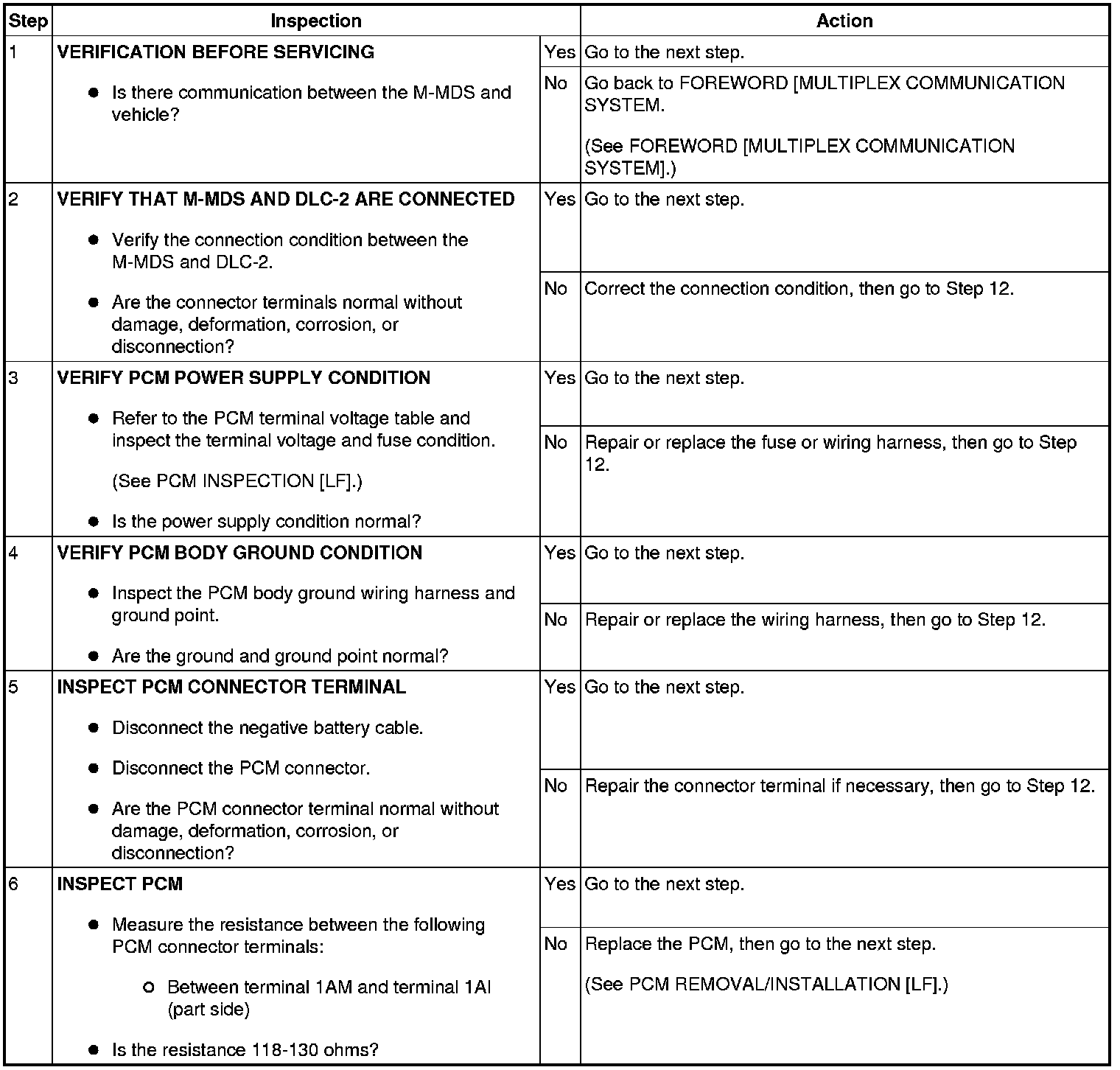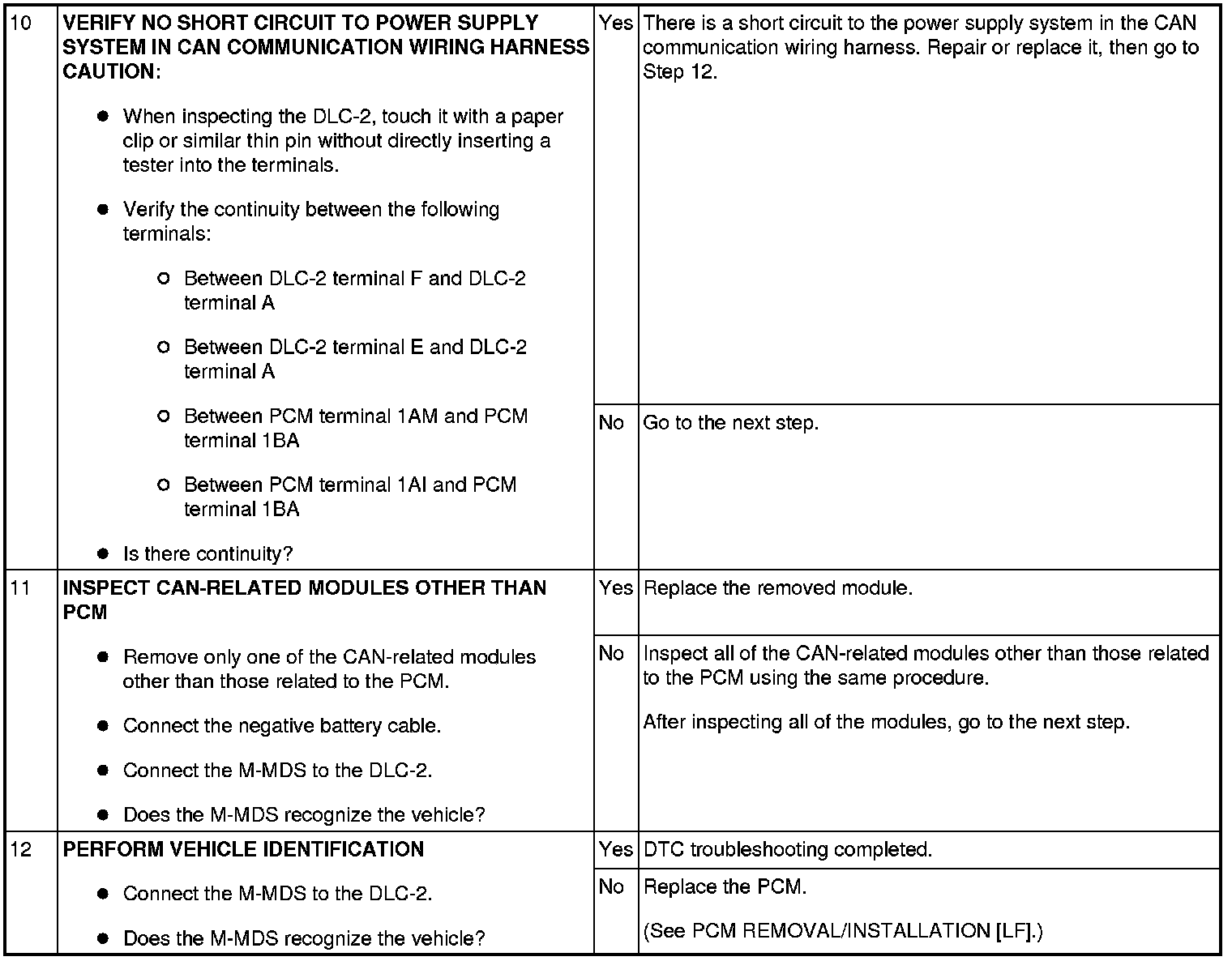 - Possible causes of communication errors between the M-MDS and vehicle include communication circuit interruption due to an open circuit in the CAN communication wiring harness, or poor contact of connector terminals, or a BUS OFF condition due to a short circuit in the CAN communication wiring harness.