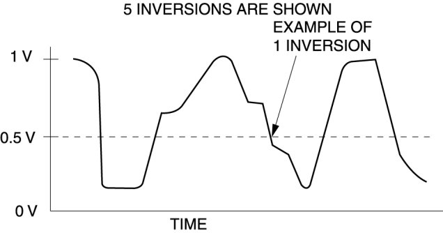 8. Count the number of times (inversions) that the upstream HO2S graph line actually crosses the 0.5 V line.