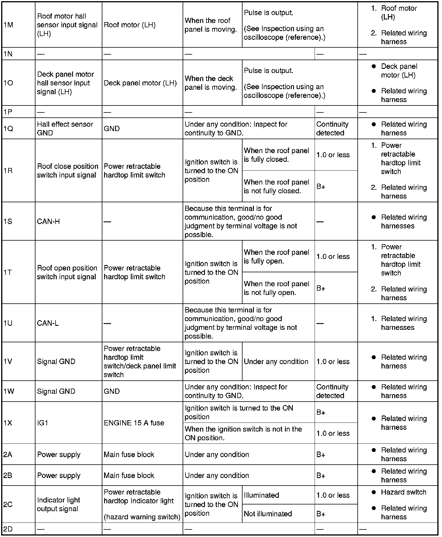 - Terminal connected: power retractable hardtop control module 1I (RH), 1M (LH)-Negative battery terminal