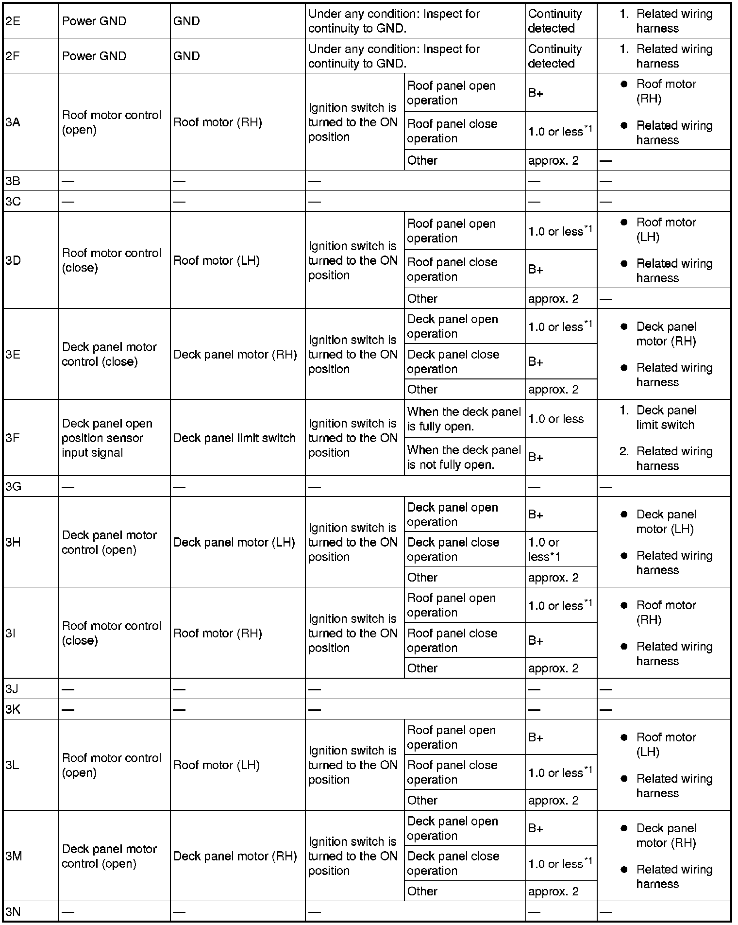 1 Terminal connected: power retractable hardtop control module 1K (RH), 1O (LH)-Negative battery terminal