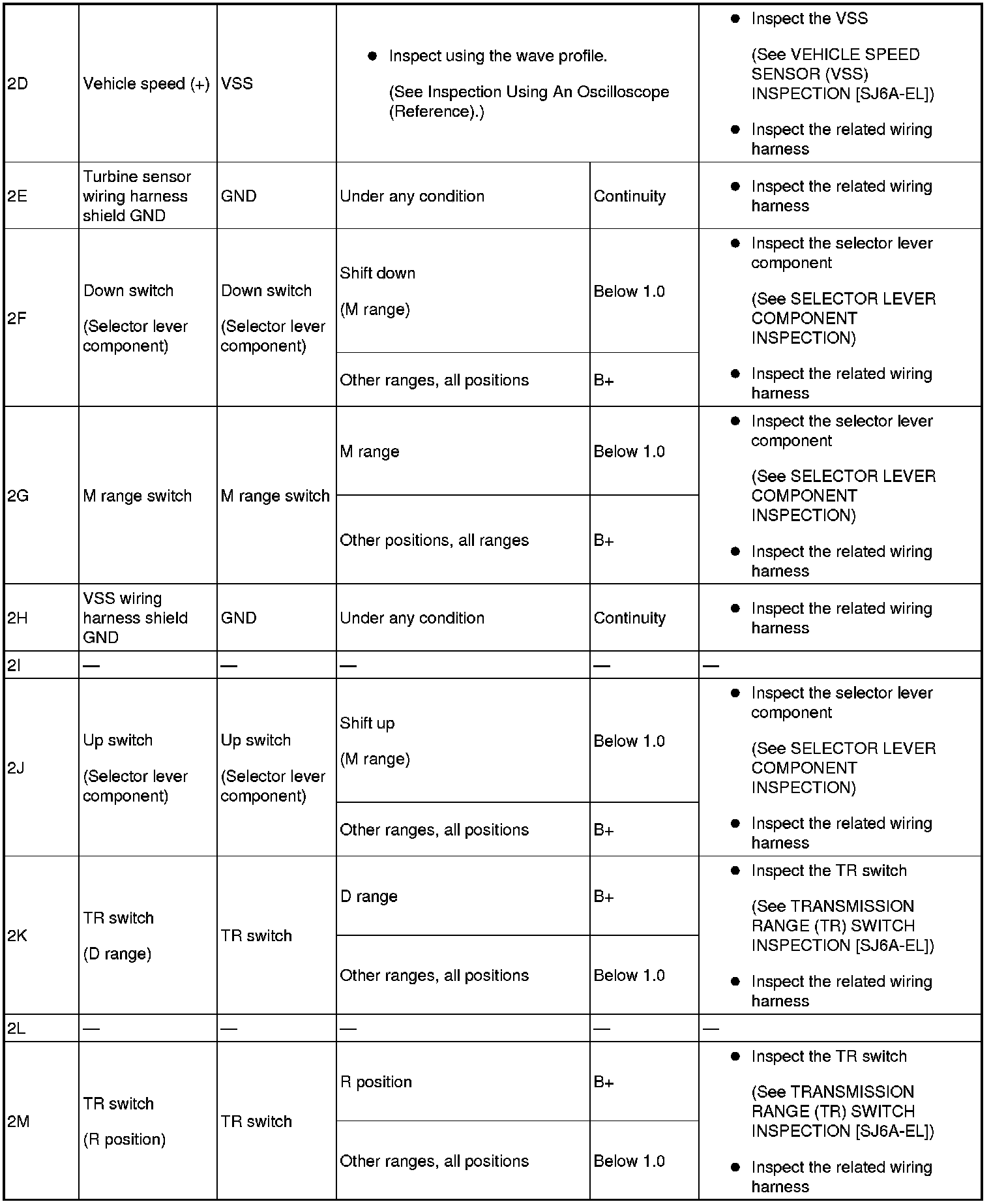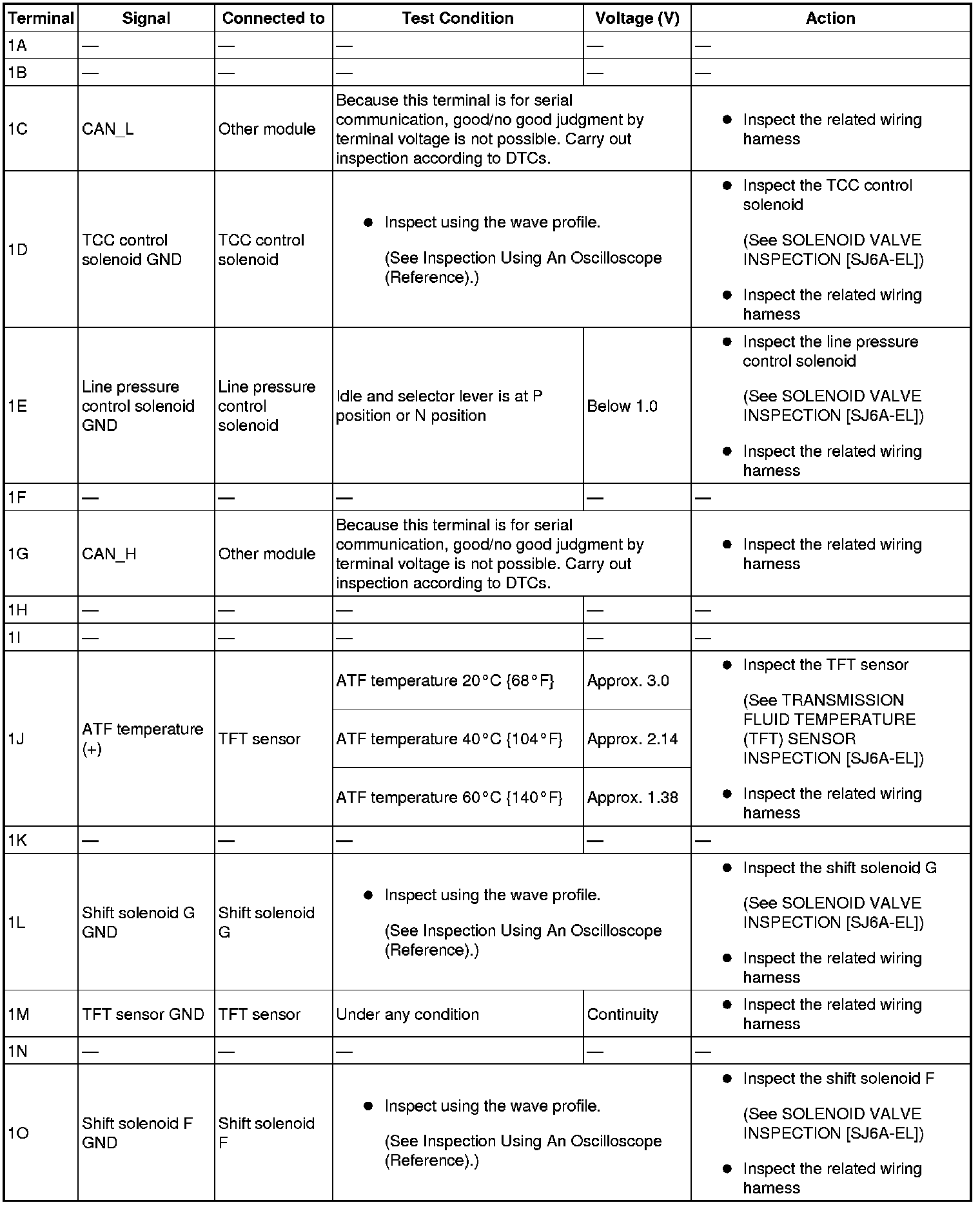 - Use the ground of terminal 1P and 1X of the TCM when measuring terminal voltage, as an error may occur when connecting the negative circuit tester to ground.