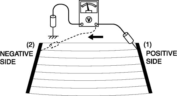 4. Gradually slide the positive lead from the positive side to the negative side and verify that the voltage decreases accordingly.