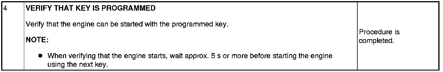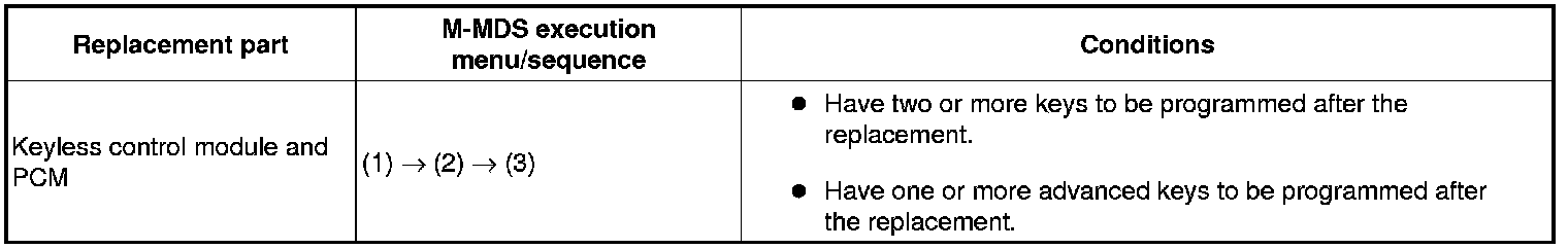 Immobilizer System-Related Parts Service and Programming Procedure Table
