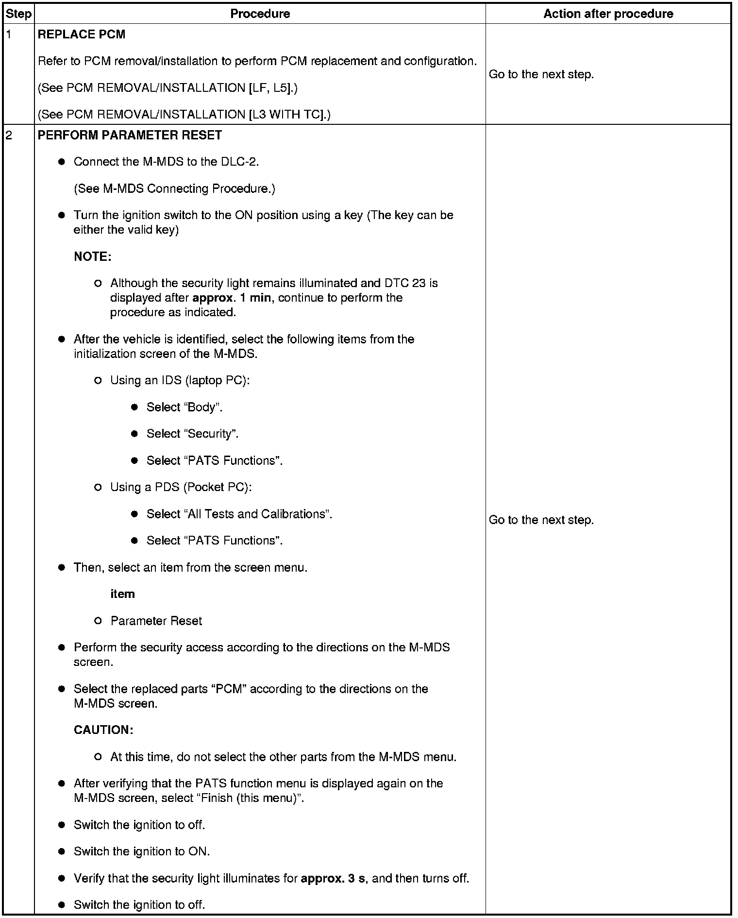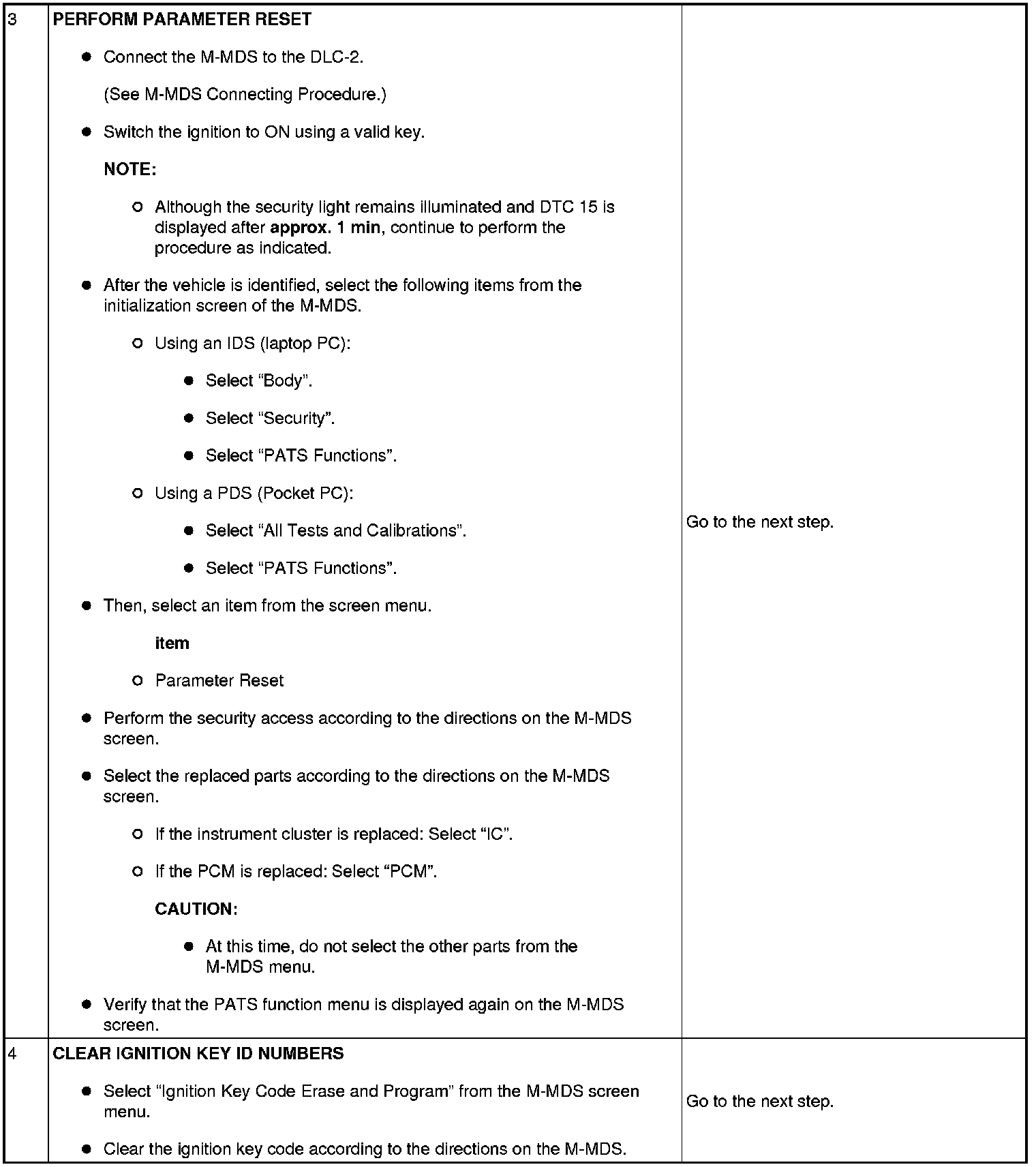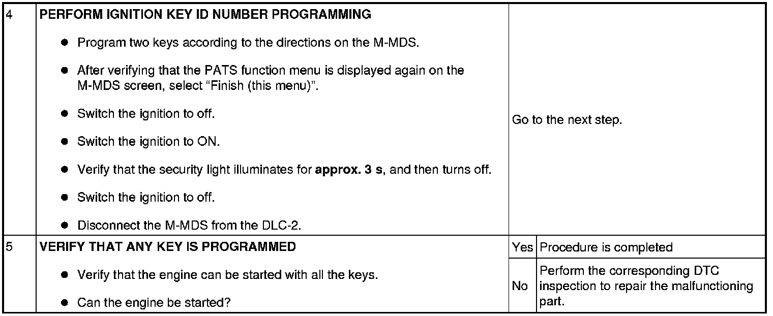 No.6 Programming Procedure Due to Simultaneous Replacement of Immobilizer System-related Parts (PCM and Instrument Cluster)