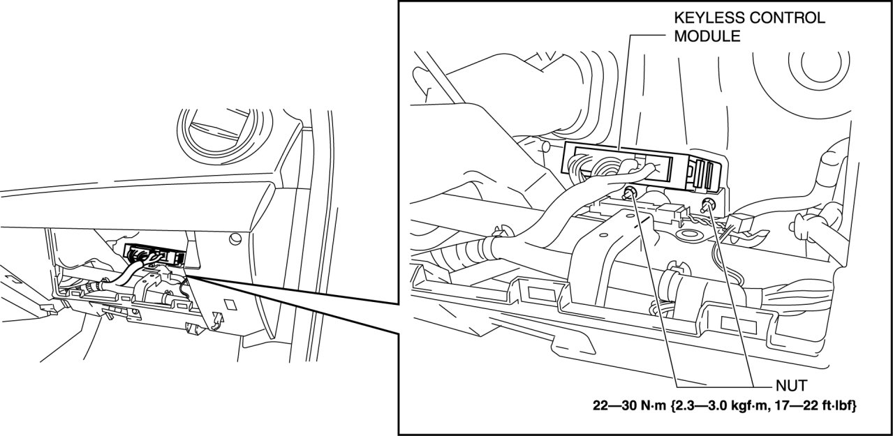 KEYLESS CONTROL MODULE REMOVAL/INSTALLATION