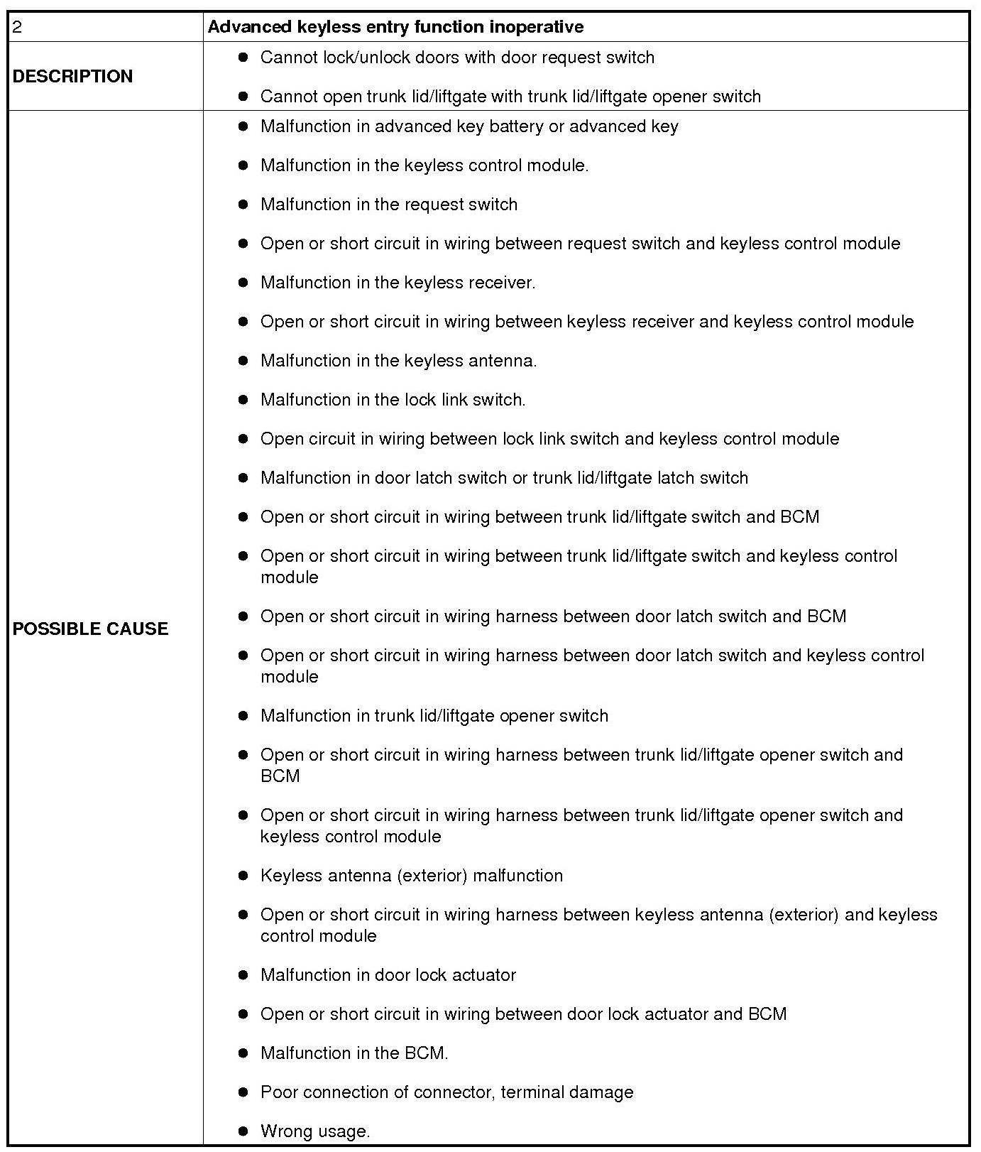 No. 2 Advanced Keyless Entry Function Inoperative