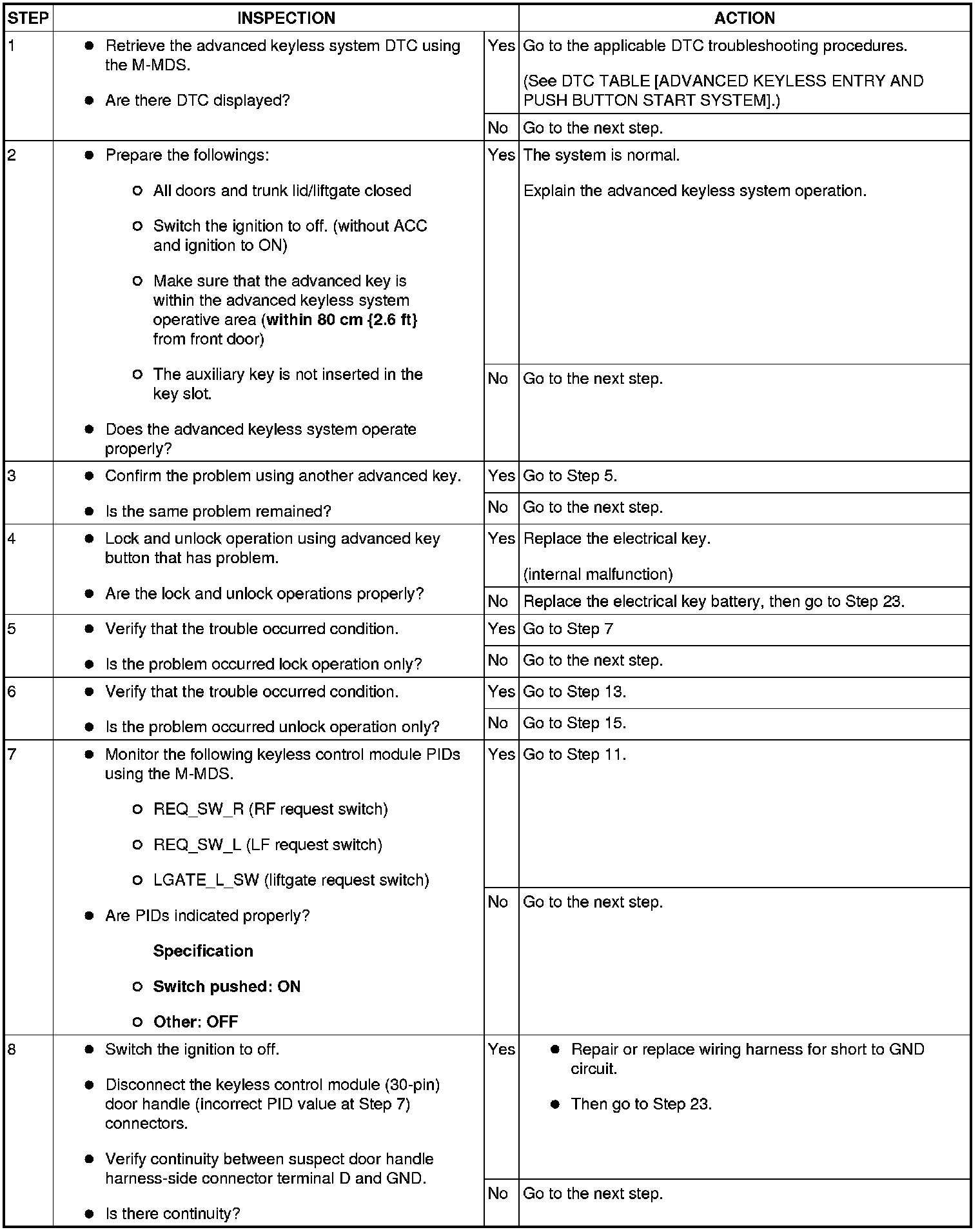 NO.2 ADVANCED KEYLESS ENTRY FUNCTION INOPERATIVE [ADVANCED KEYLESS ENTRY AND PUSH BUTTON START SYSTEM]