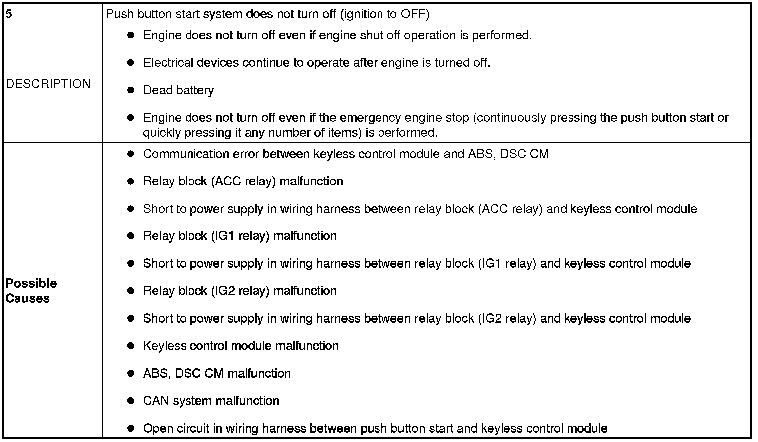 No. 5 Push Button Start System Does Not Turn Off (IG Off)