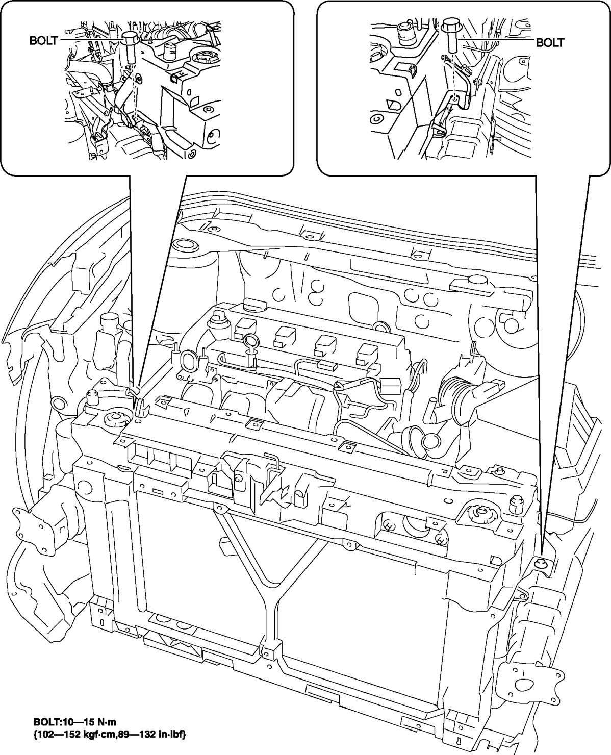 - Because the shroud panel is installed to the bumper reinforcement, support the shroud panel using a jack before removing the bumper reinforcement so as not to apply excessive force to the shroud panel.
