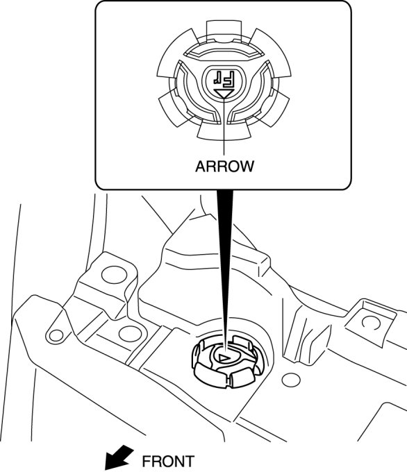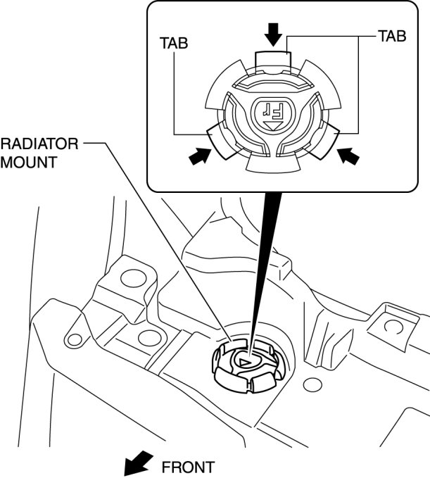 1. Install the radiator mount so that the arrow on it is pointed toward the front of the vehicle.