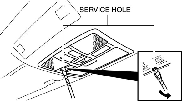 1. Insert a tape-wrapped fastener remover into the service hole and pry with the screwdriver in the direction shown by the arrow to remove the lens.
