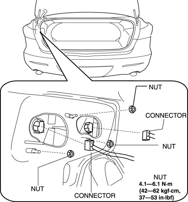 3. Disconnect the connectors shown in the figure and remove the nuts.