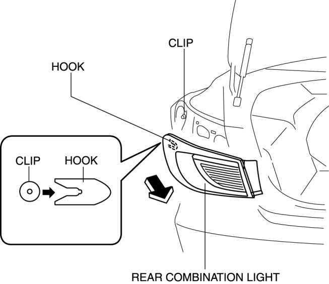 7. Pull the rear combination light in the direction of the arrow to detach it from the hook.