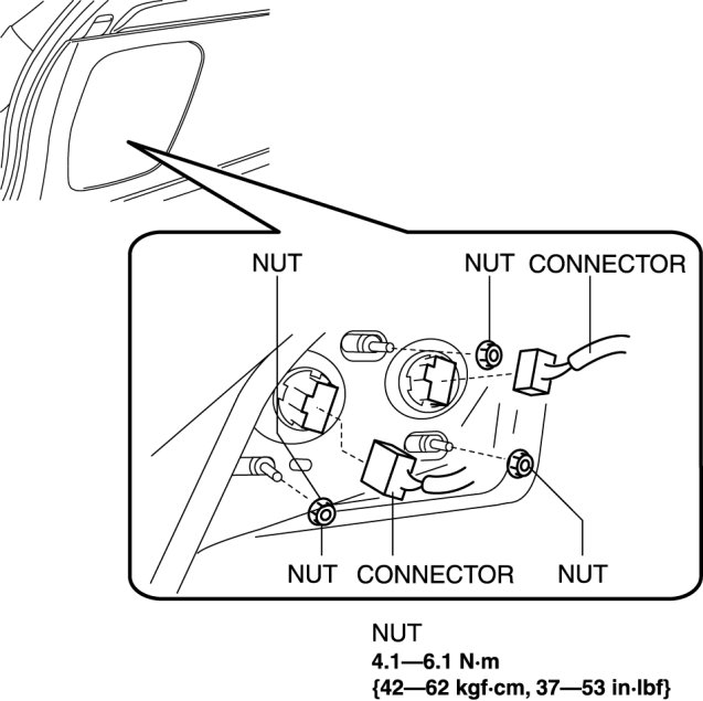 6. Disconnect the connectors shown in the figure and remove the nuts.