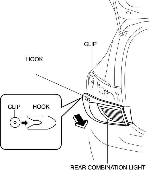4. Pull the rear combination light in the direction of the arrow to detach it from the hook.