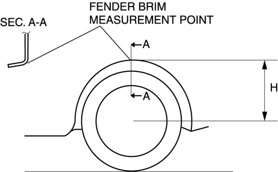 7. Measure height H from the center of the wheel to the fender brim.