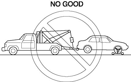 - Do not tow the vehicle pointed backward with driving wheels on the ground. This may cause internal damage to the transaxle.