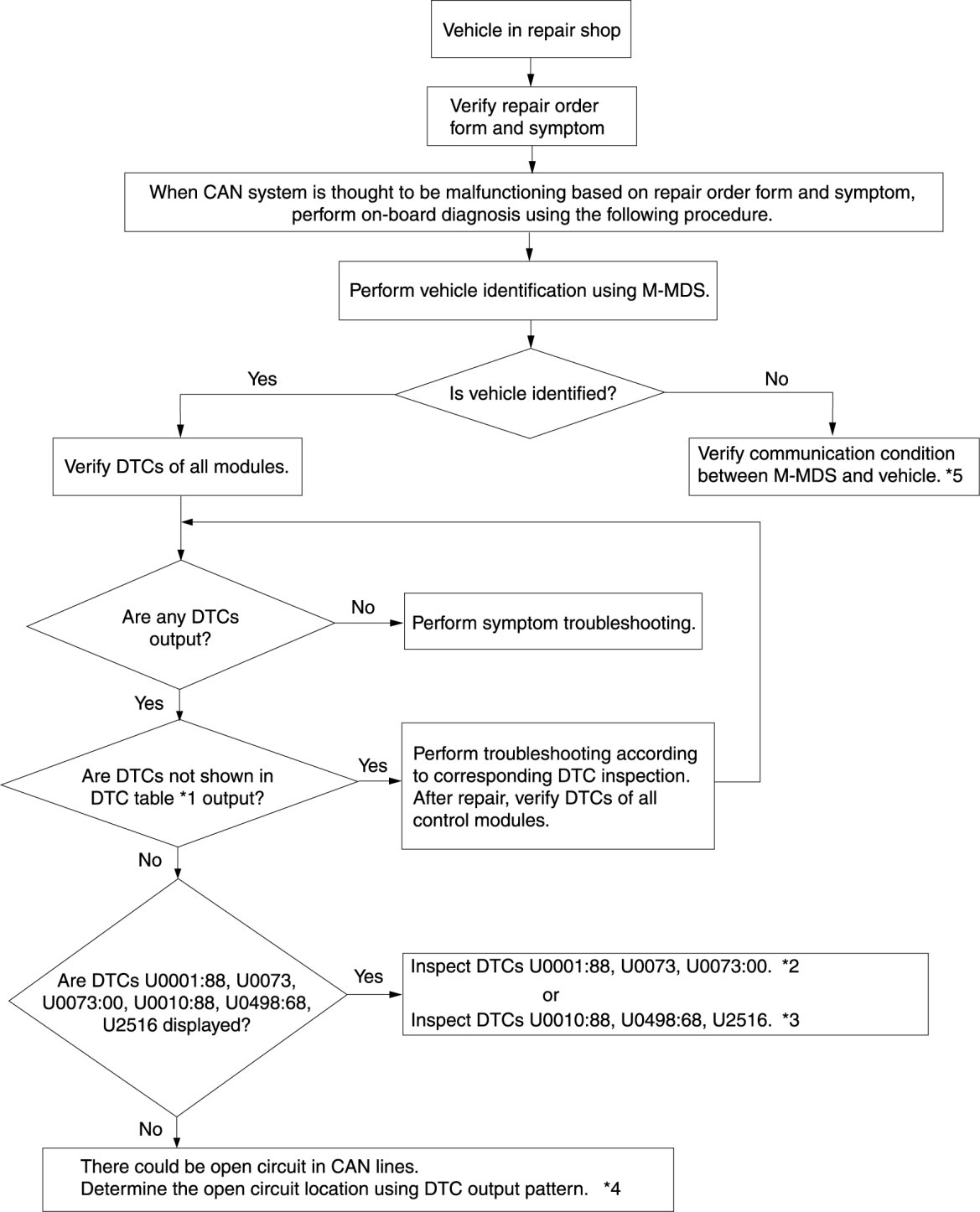 - If the CAN system is considered to be the cause of the malfunction based on the repair order form and the malfunctioning symptom, follow the Troubleshooting Procedure.