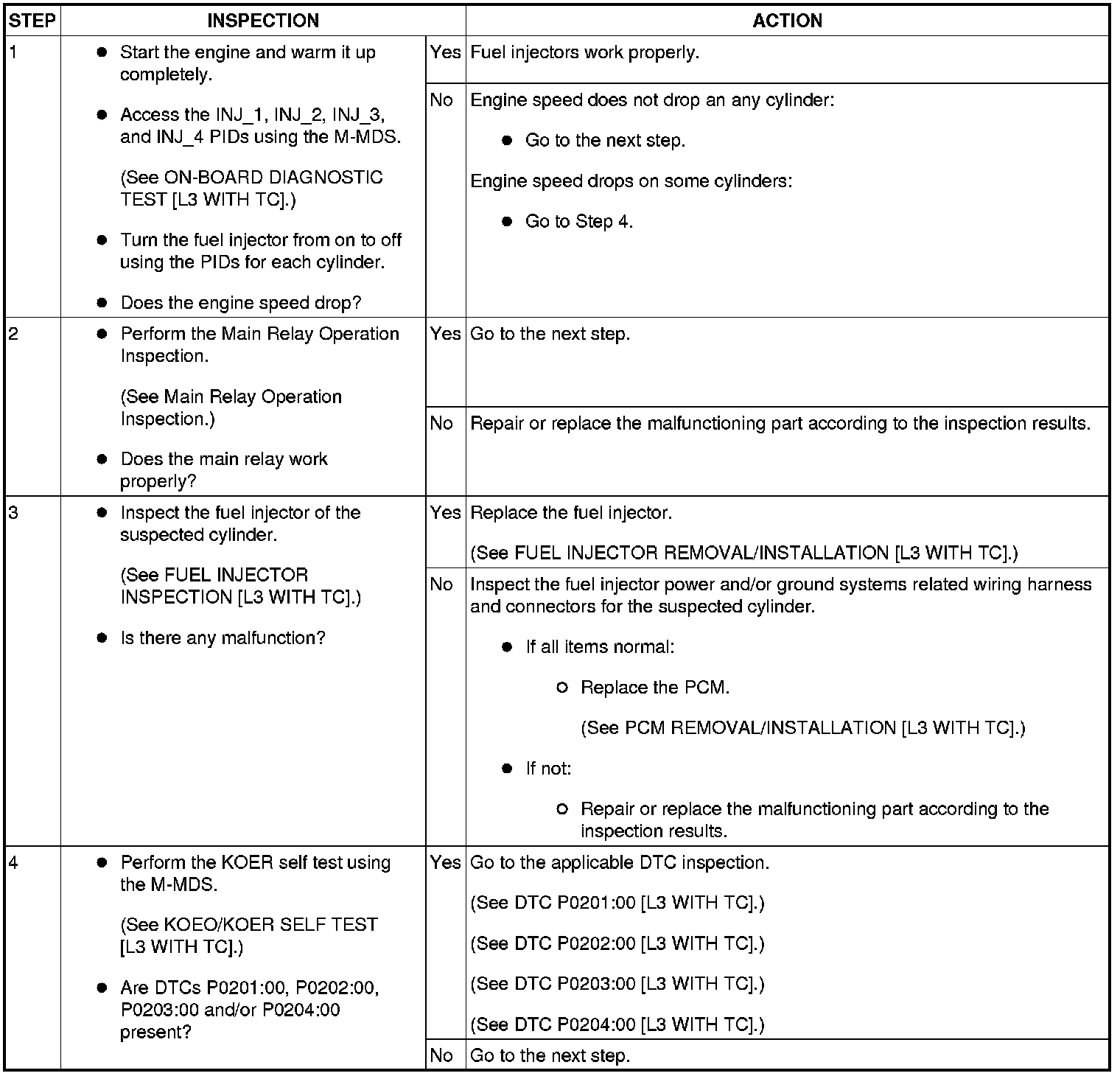 - This inspection has to be performed after the Fuel Injector Operation Inspection.