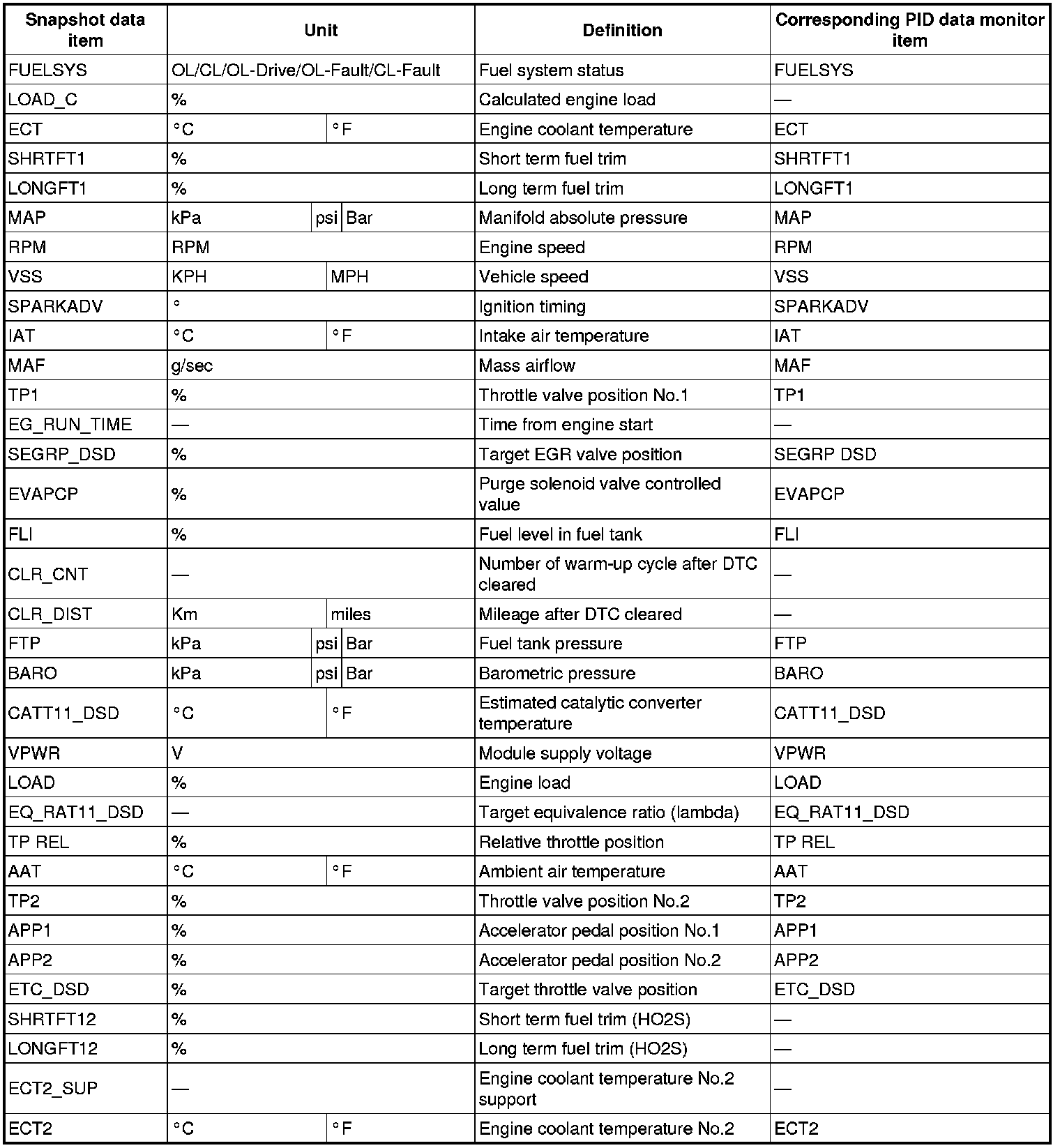 - The recording timing for the freeze frame data/snapshot data differs depending on the number of DTC drive cycles.