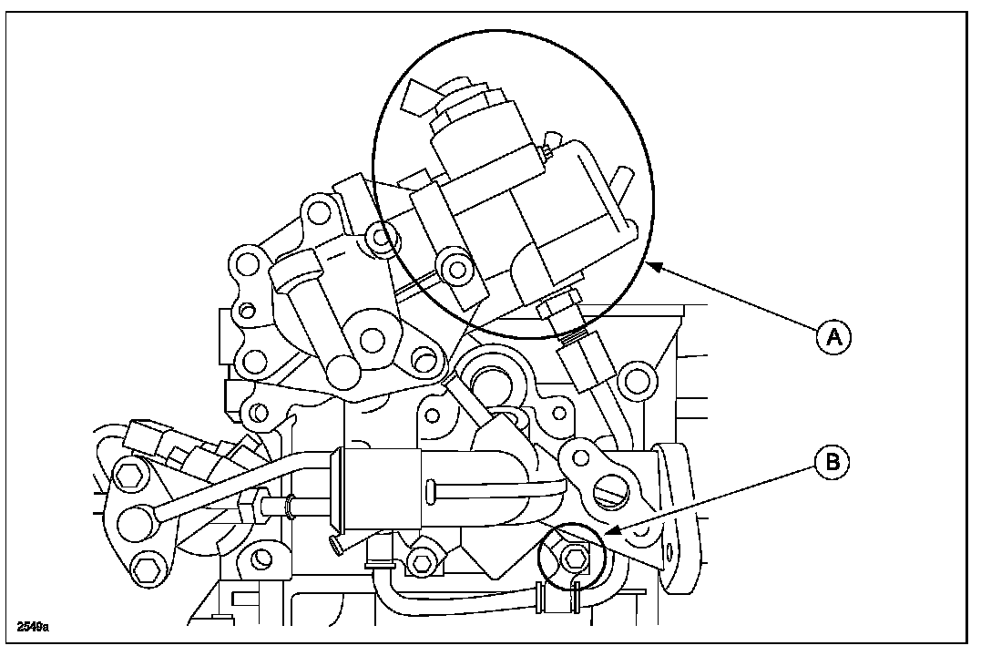 Before removing the high pressure fuel pump (A), make sure to remove the "water outlet case installation bolt" (B) to loosen the high pressure line pipe.