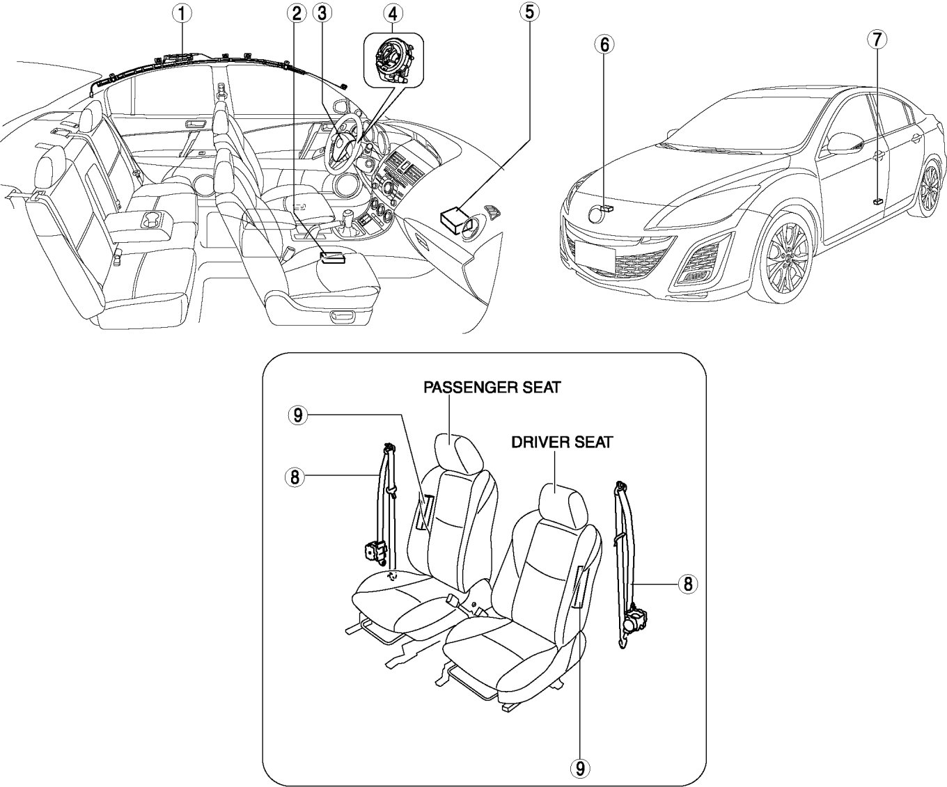 AIR BAG SYSTEM LOCATION INDEX [STANDARD DEPLOYMENT CONTROL SYSTEM]