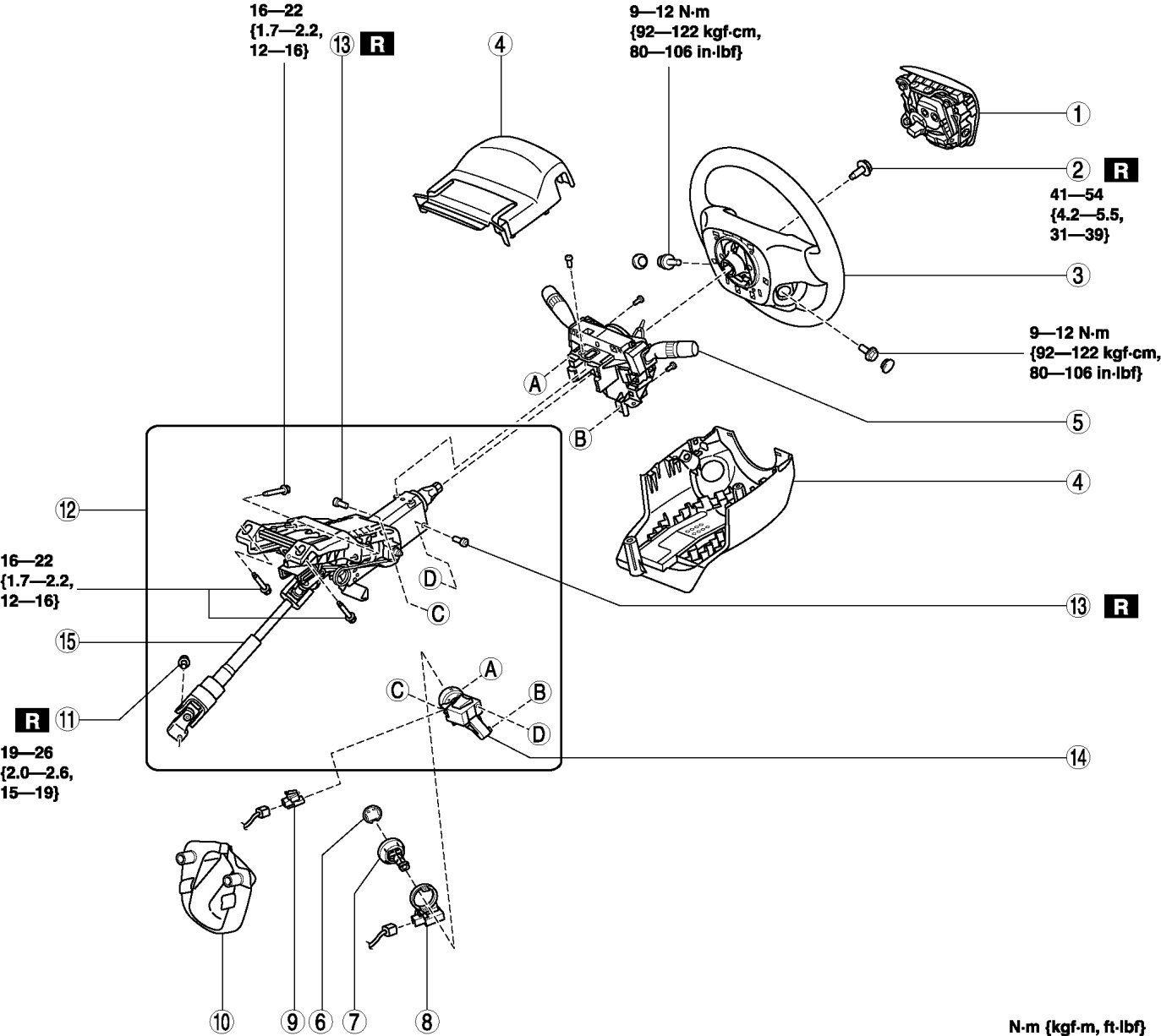 STEERING WHEEL AND COLUMN REMOVAL/INSTALLATION [WITH ADVANCED KEYLESS ENTRY AND PUSH BUTTON START SYSTEM]