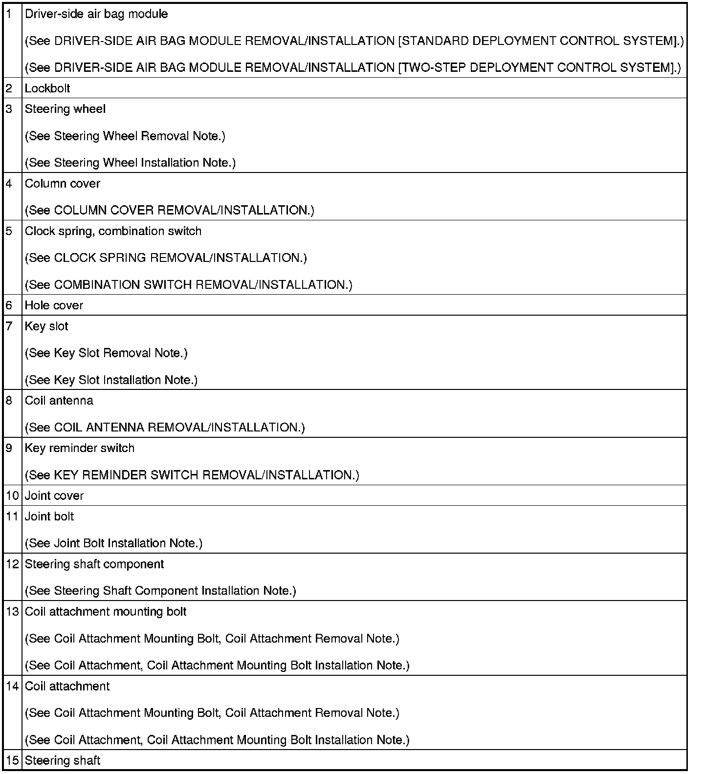 Steering Wheel Removal Note