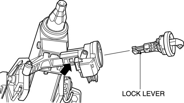 2. Insert a pin from the position indicated by the arrow in the figure, and while pressing the lock lever with the pin, remove the key slot from the steering lock component.