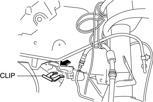 4. Install the brake hose to the bracket as shown in the figure and install the clip.