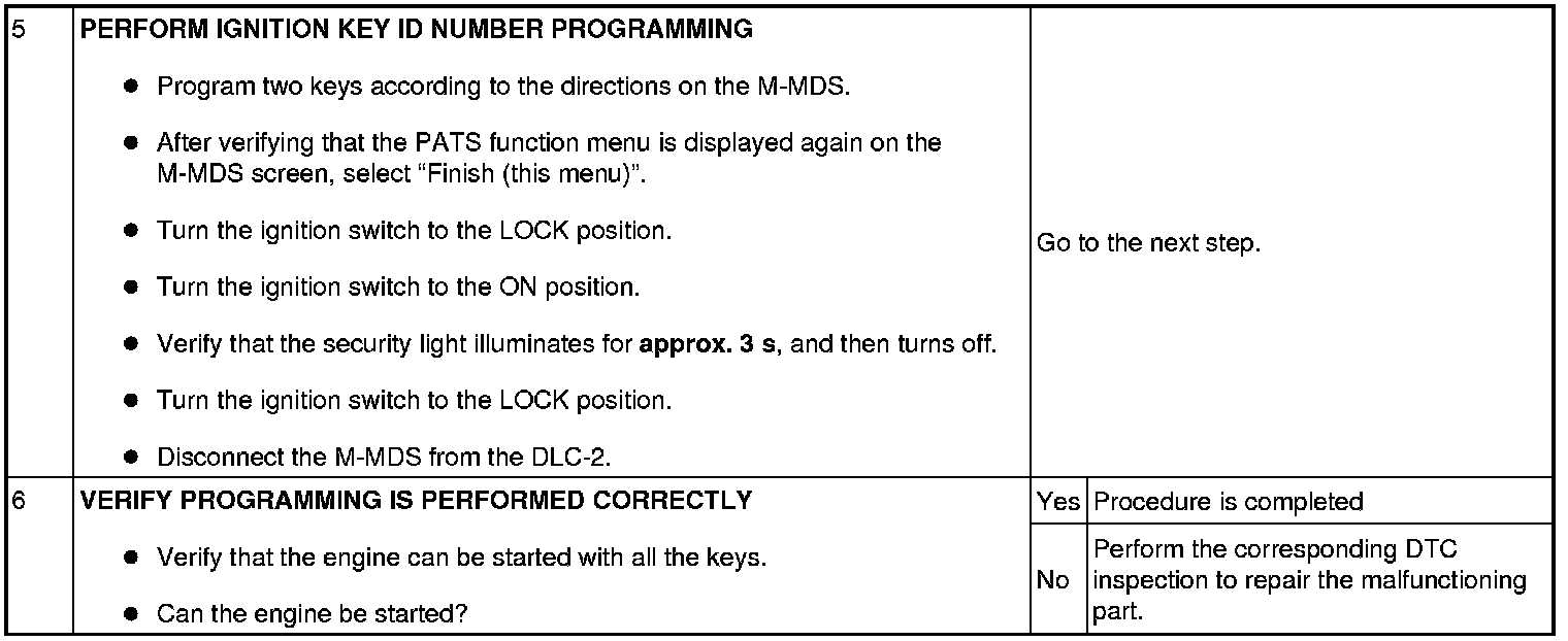 No.6 Programming Procedure Due to Simultaneous Replacement of Immobilizer System-related Parts (PCM and Keyless Control Module)