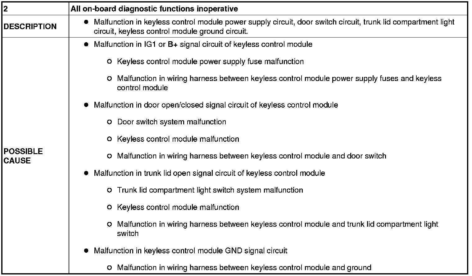 NO.2 ALL ON-BOARD DIAGNOSTIC FUNCTIONS INOPERATIVE [KEYLESS ENTRY SYSTEM]