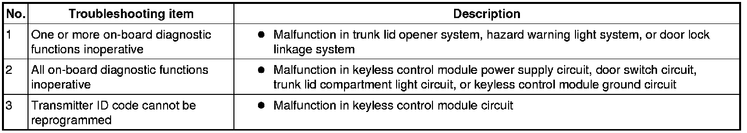 SYMPTOM TROUBLESHOOTING INDEX [KEYLESS ENTRY SYSTEM]