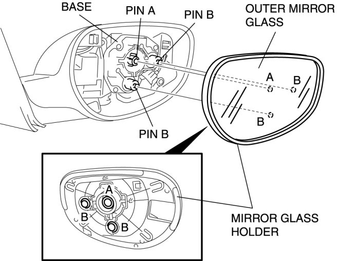 2. Detach pin A while lifting up the inside of the mirror glass holder.