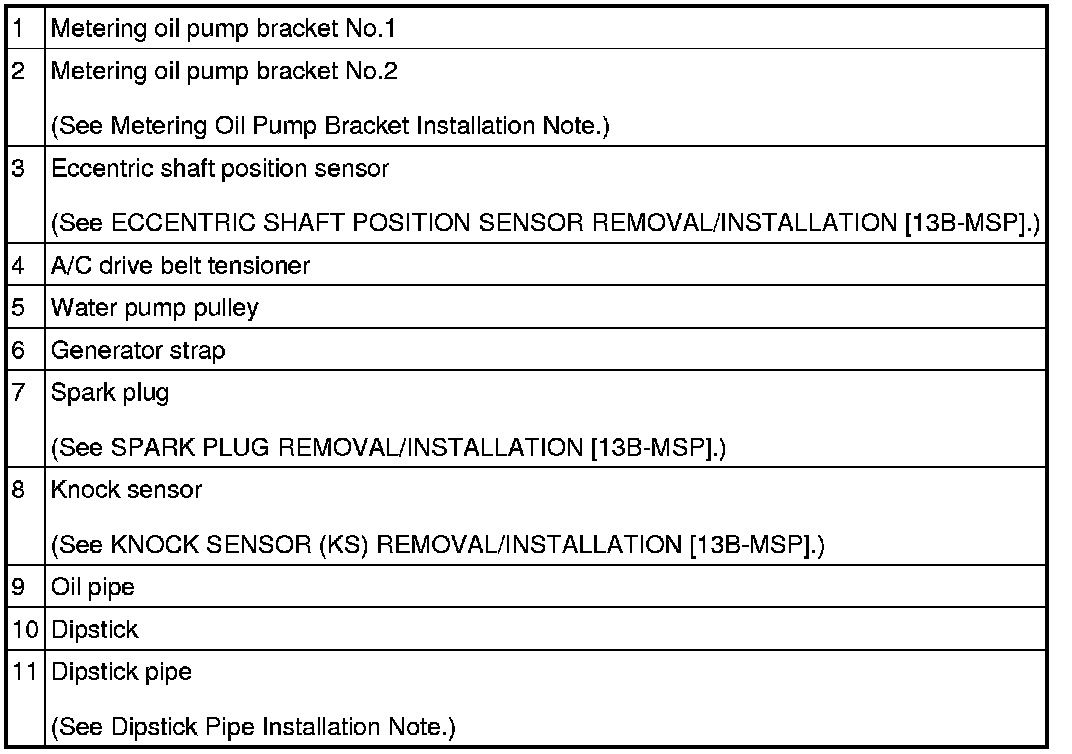 1. Tighten the metering oil pump bracket No.2 installation bolts in the order shown.