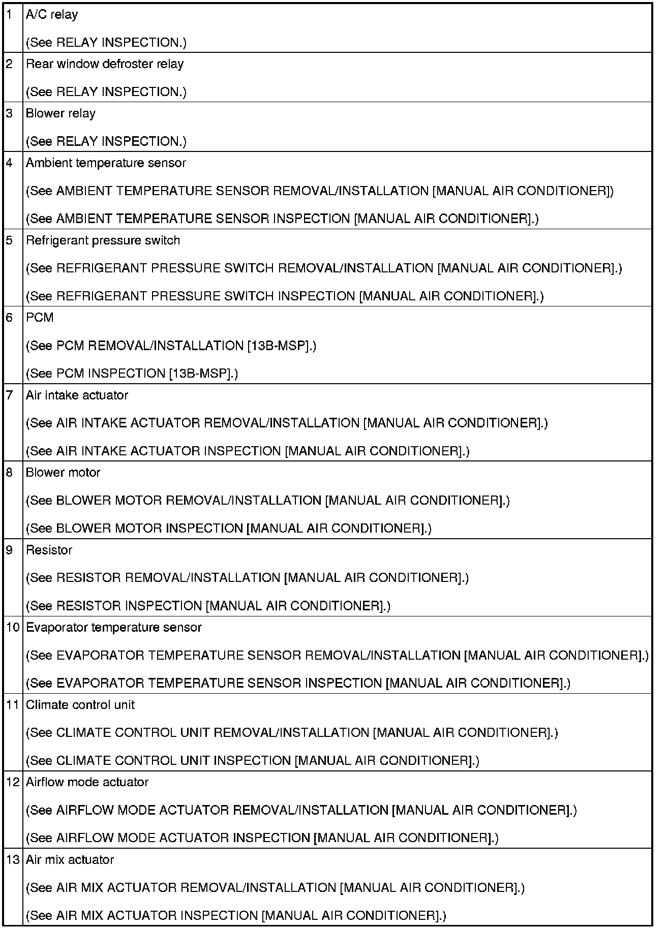HVAC CONTROL SYSTEM LOCATION INDEX [MANUAL AIR CONDITIONER]
